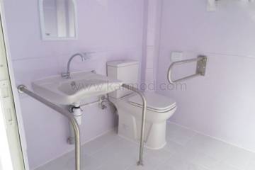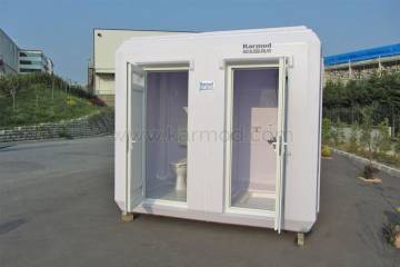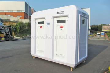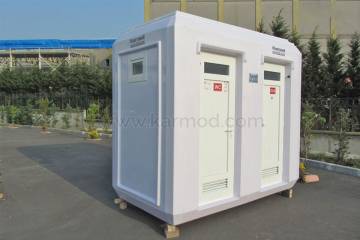 Inside Karmod mobile restrooms, there is a sink with separate clean, and waste, water tanks, and a flush system toilet. Portable toilets are perfect for use in places where there is no sewer connection. In such cases, portable toilets can be set-up temporarily and easily removed when they are no longer required.