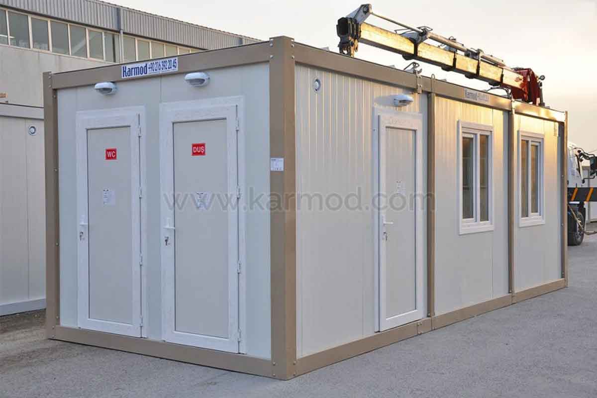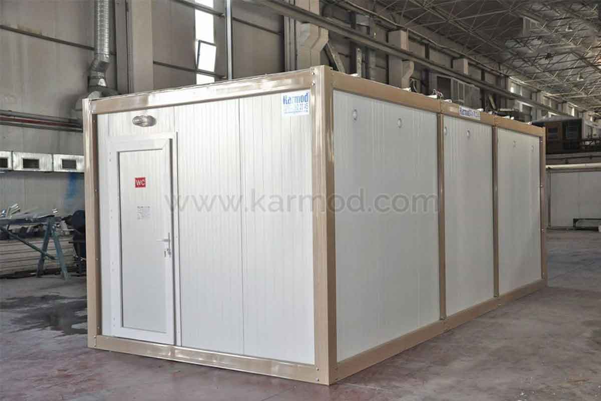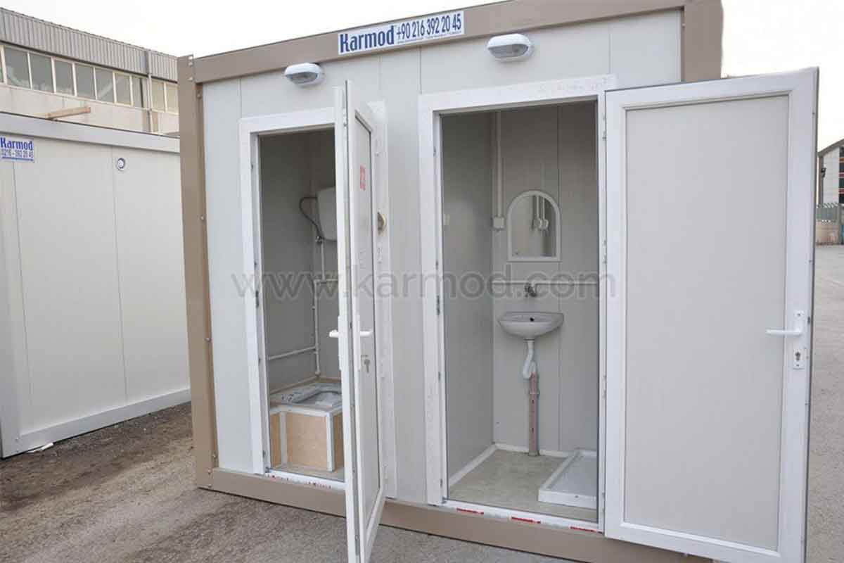 Karmod offers a wide range of portable restroom trailer for use on construction companies, festivals, campsites, concerts, public events and many more locations. The portable restroom blocks included in our toilet range all come with sturdy structures and an anti-vandal protection system.
