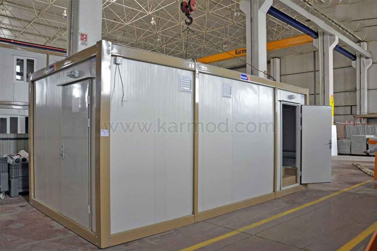 Although portable restroom trailer have very small areas, cleanliness and hygiene are still paramount in these types of buildings, which is why ours are equipped with a small sink and fountain. This is why Karmod regularly supply, with great satisfaction, the portable restroom trailer and bathroom containers, that we fabricate, to famously dirt-heavy sites such as construction sites, worker construction sites, mines, mine exploration, and inspection sites, and road construction sites.